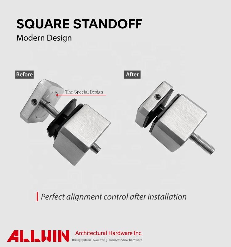 Modern 40x40mm Stainless Steel Square Glass Railing Standoff Glass Standoff Pin for Stairs Staircase