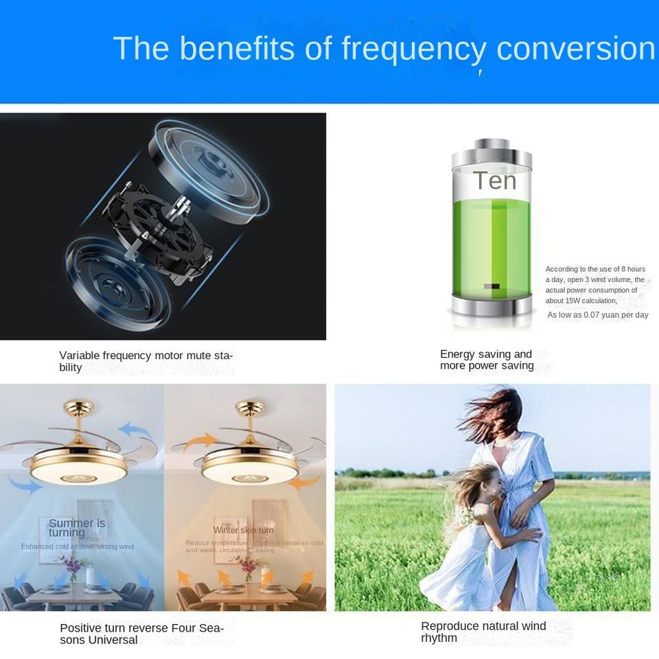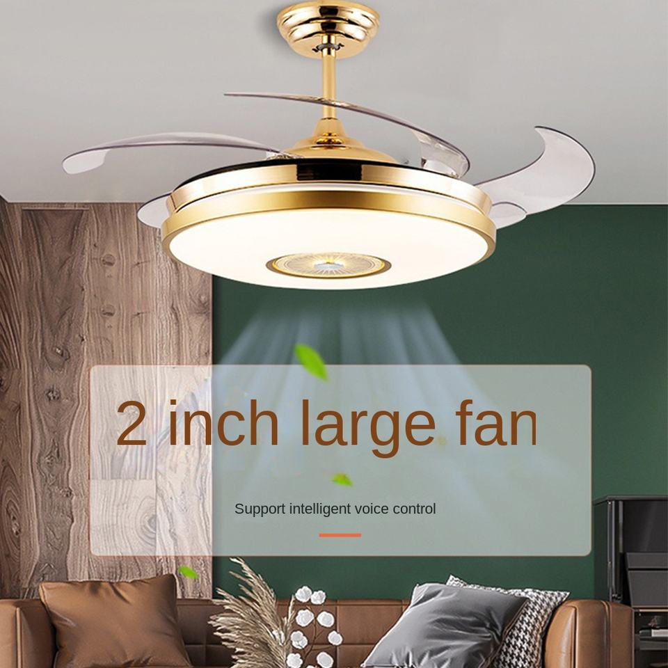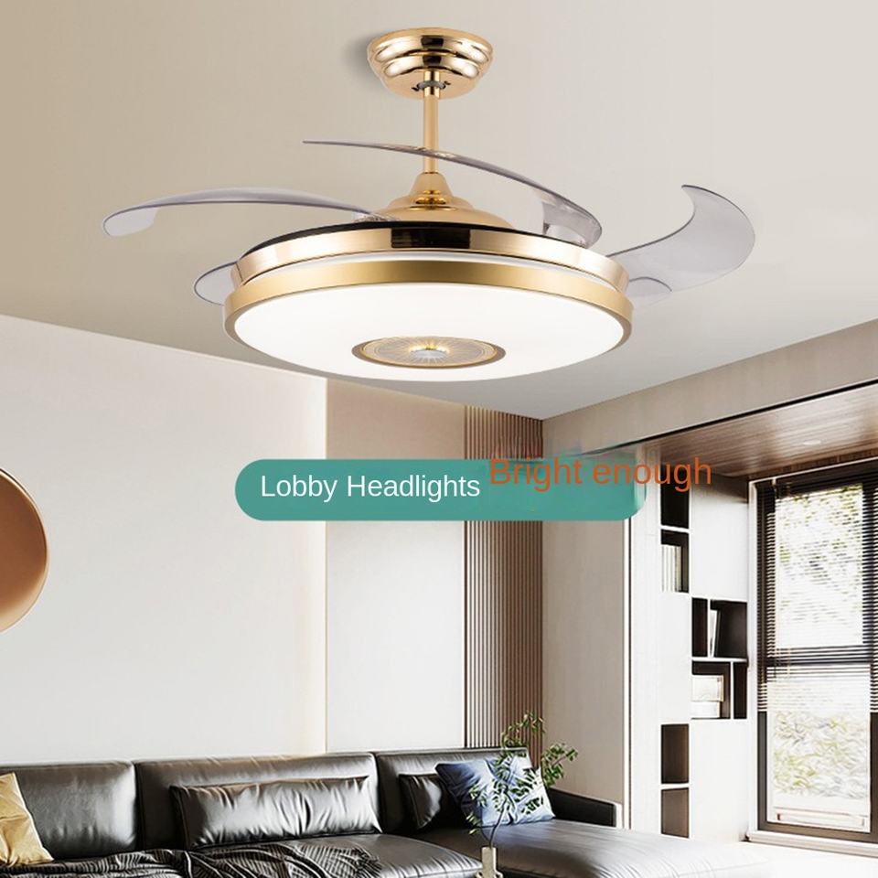 Modern 42-Inch Retractable Ceiling Fan Light with LED Luxury Invisible Styles Gold for Hotel Living Room Remote Control Included