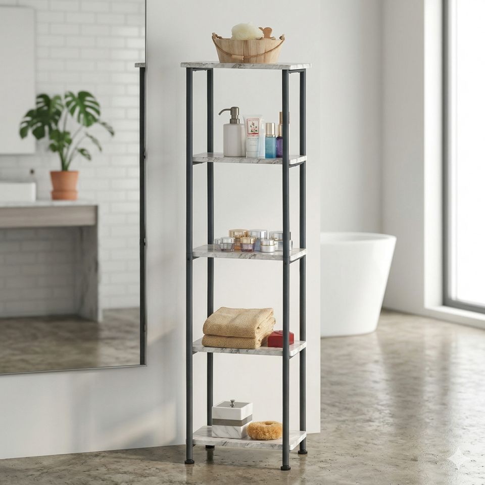 Modern 5-Tier Marble Pattern Glass Corner Shelf Direct Factory OEM Storage Organizer for Home Hotel Shipped Bathroom Shelves
