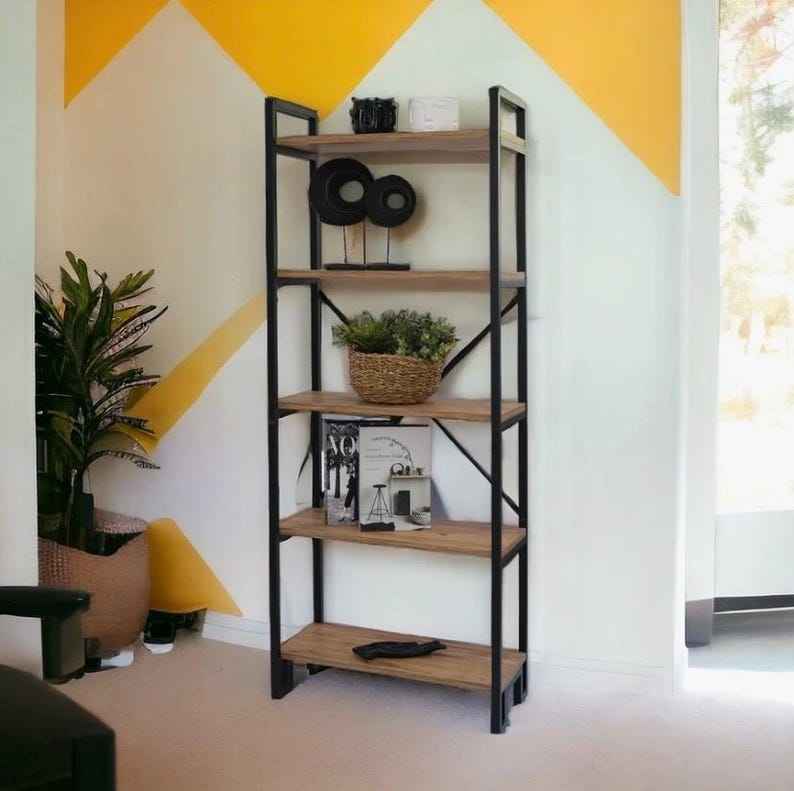 Modern 5-Tier Open Shelf Unit Tall Wooden Storage Bookcase Display Rack for Living Room Bedroom Freestanding Coffee Table