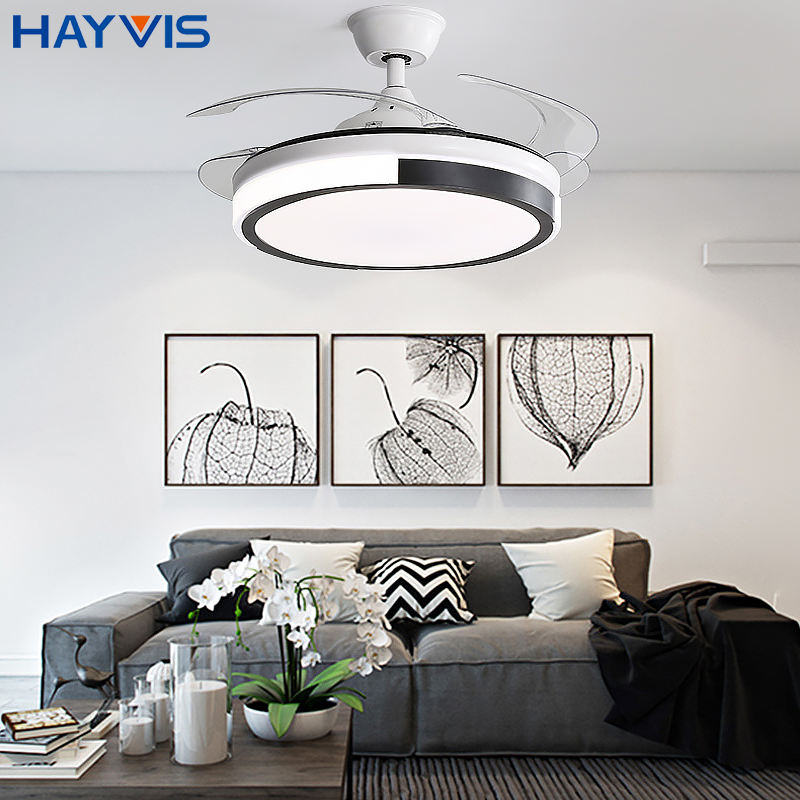 Modern 50-Inch DC Motor 6-Speed LED Ceiling Fan Light 4 Blades Moisture-Proof Indoor Home Remote Control Rechargeable Metal