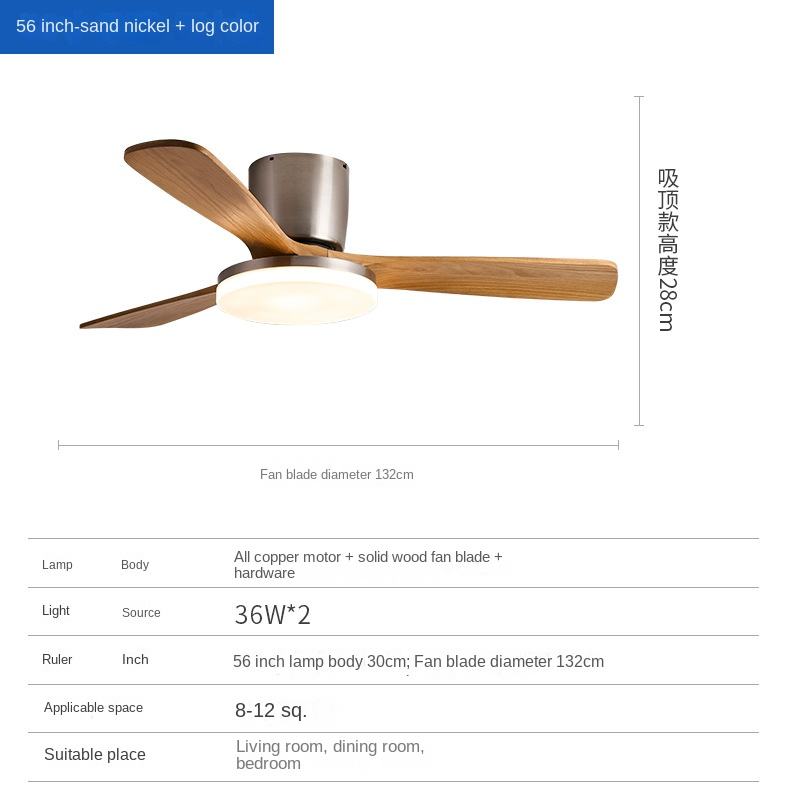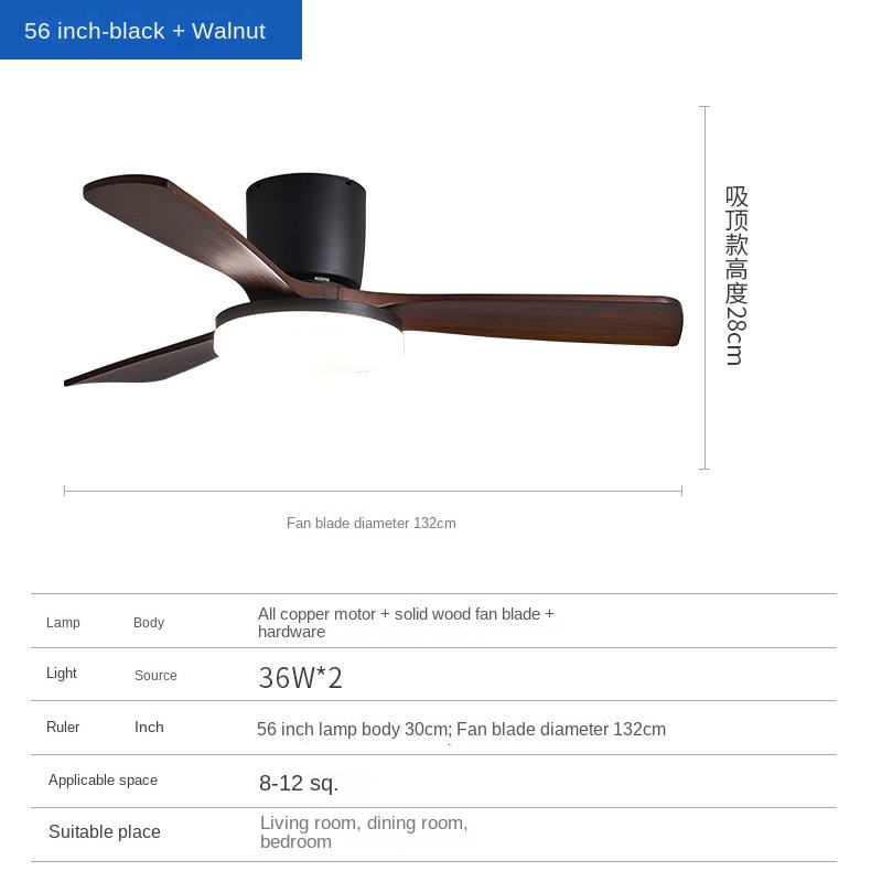 Modern 52-Inch FCJ LED Ceiling Fans with Remote Control Dc Motor Wood Abs Metal Iron Glass Lamp Body for Living Room & Hotel