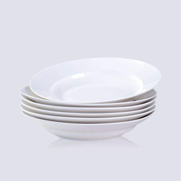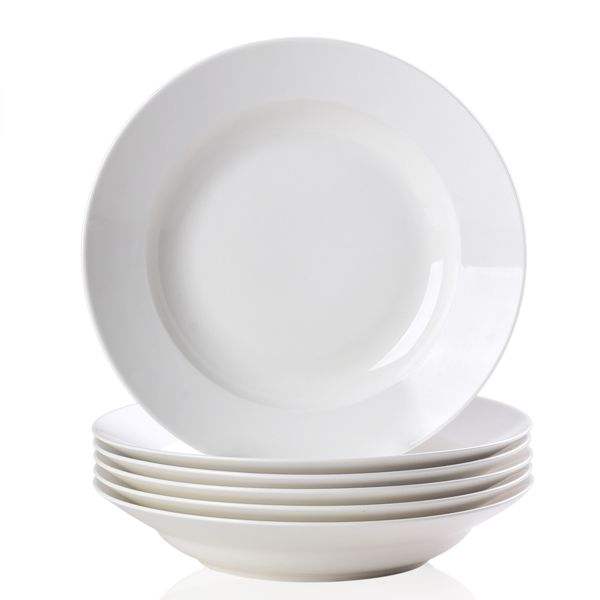 Modern 6-Piece Set of White 9.5 Inch Dinner & Salad Plates Oven & Microwave Safe Scratch Resistant with Smooth Glaze