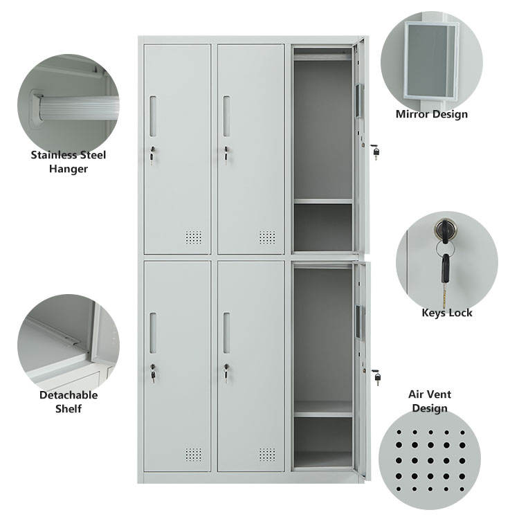 Modern 6-Door Steel Gym Office Hospital Locker Key Eco-Friendly Powder Coating Adjustable Shelf-Colorful Metal Staff Work Locker