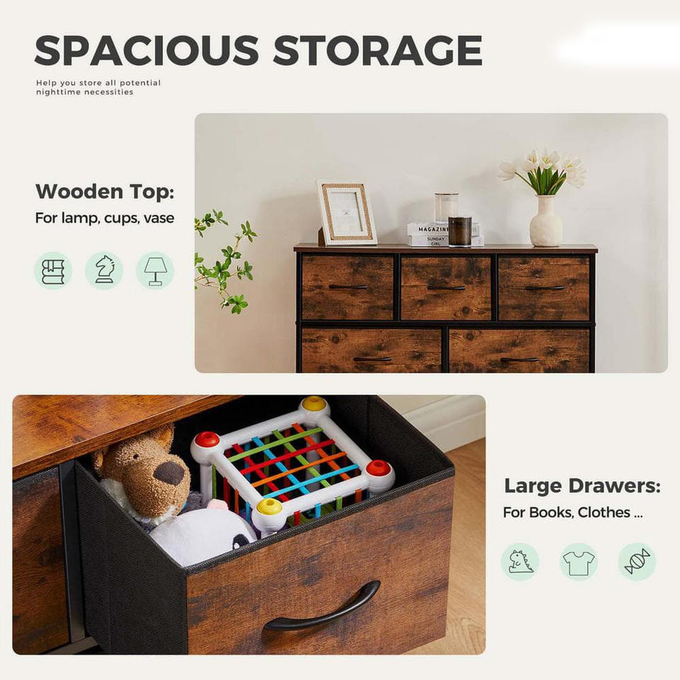 Modern 7-Drawer Acacia Wood Dresser