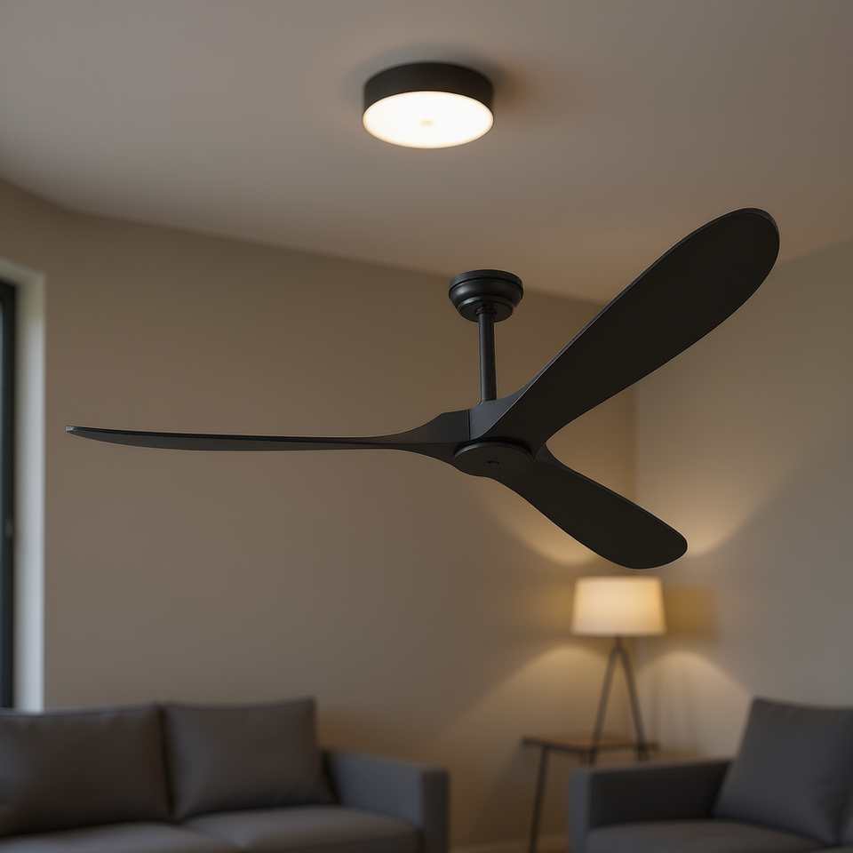 Modern 72-Inch Ceiling Fan Light Black 3-Blade DC Motor Remote Control Reversible Flush Mount for Living Room