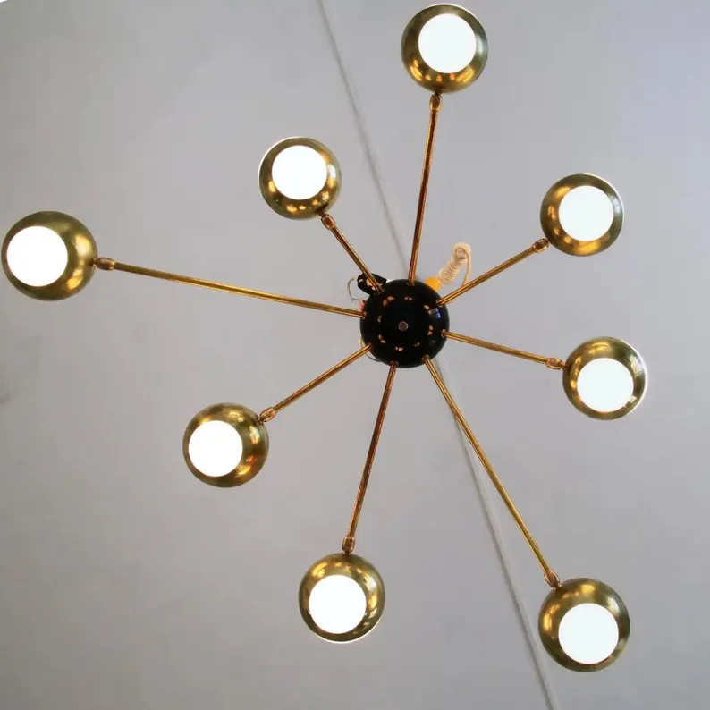 Modern 8 Arm Flush Mount Brass Ceiling Chandelier with Glass Lights Perfect for Living Room Dining Room and Entryway