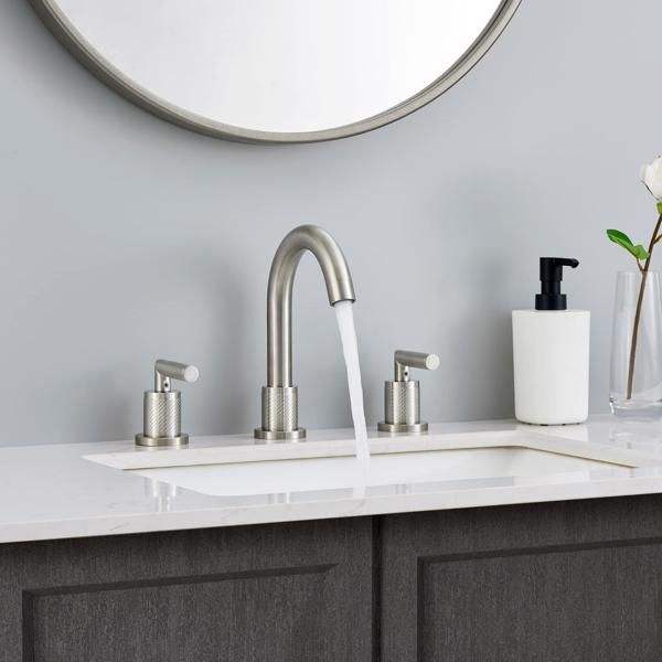 Modern 8-Inch Bathroom Faucet 2-Handle Brushed Nickel Sink Faucet 360 Degree Swivel Spout Widespread 3-Hole Bath Shower Faucets