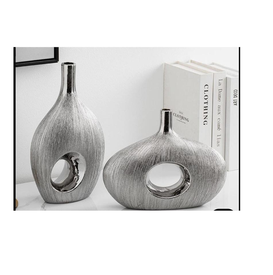 Modern Abstract Aluminum Handmade Eco-Friendly Flower Vase Set Silver Hollow Donut Table Centerpiece Living Room Decor Wholesale