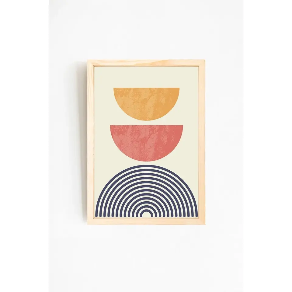 Modern Abstract Design Framed Wall Art 19-1 with Natural Wood Frame Multi-color