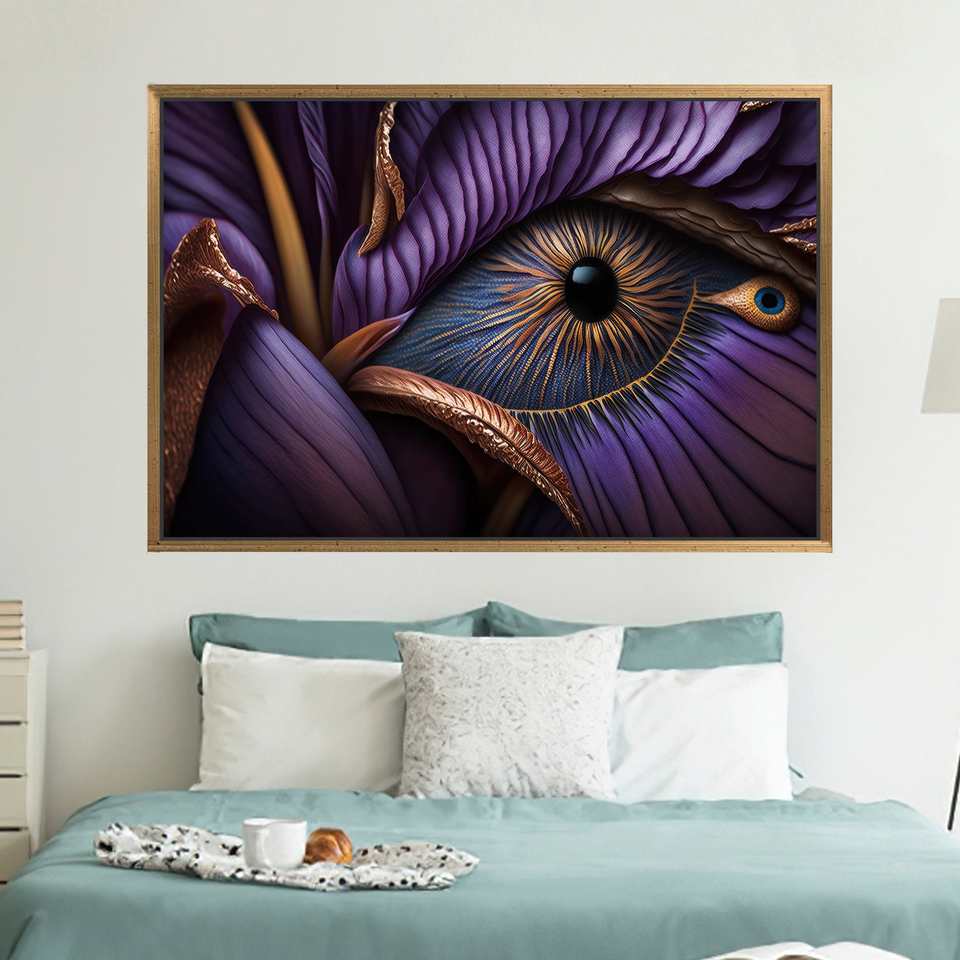 Modern Abstract Eye Canvas Print: Sleek Purple Wall Art Decor,1P:Gold Framed