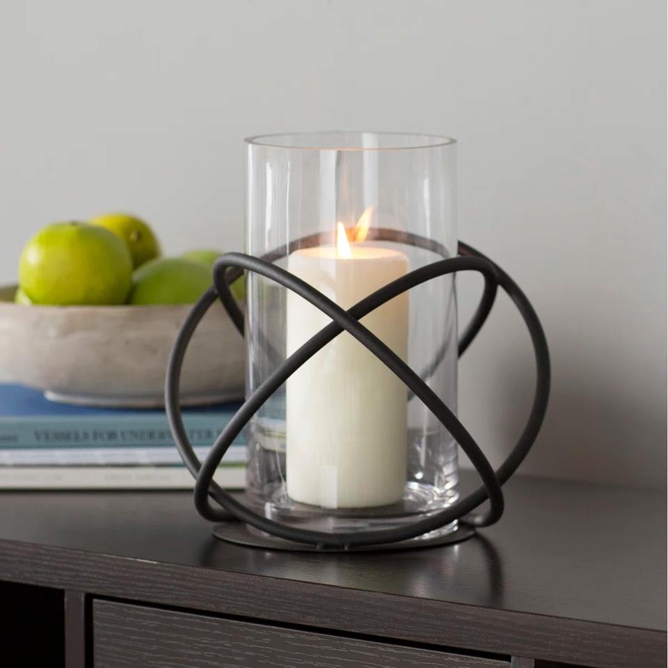 Modern Abstract Hurricane Candle Holder Metal Ring Frame Rustic Industrial Decor Heavy Bronze Tone Metal Glass Christmas Easter
