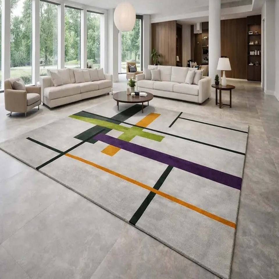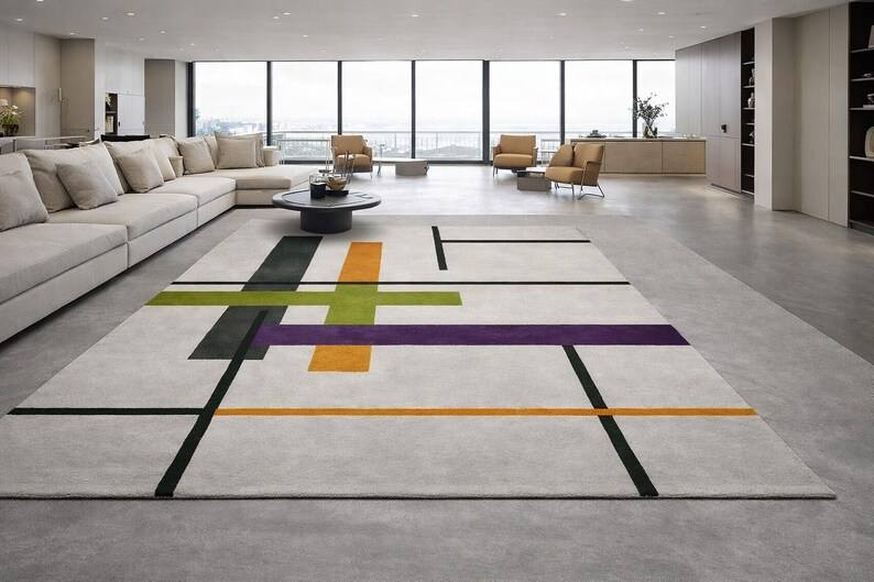 Modern Abstract Line Area Rug Large Living Room Carpet Minimalist Hand Tufted Floor Decor Soft Plush Bedroom Carpet Home Rug