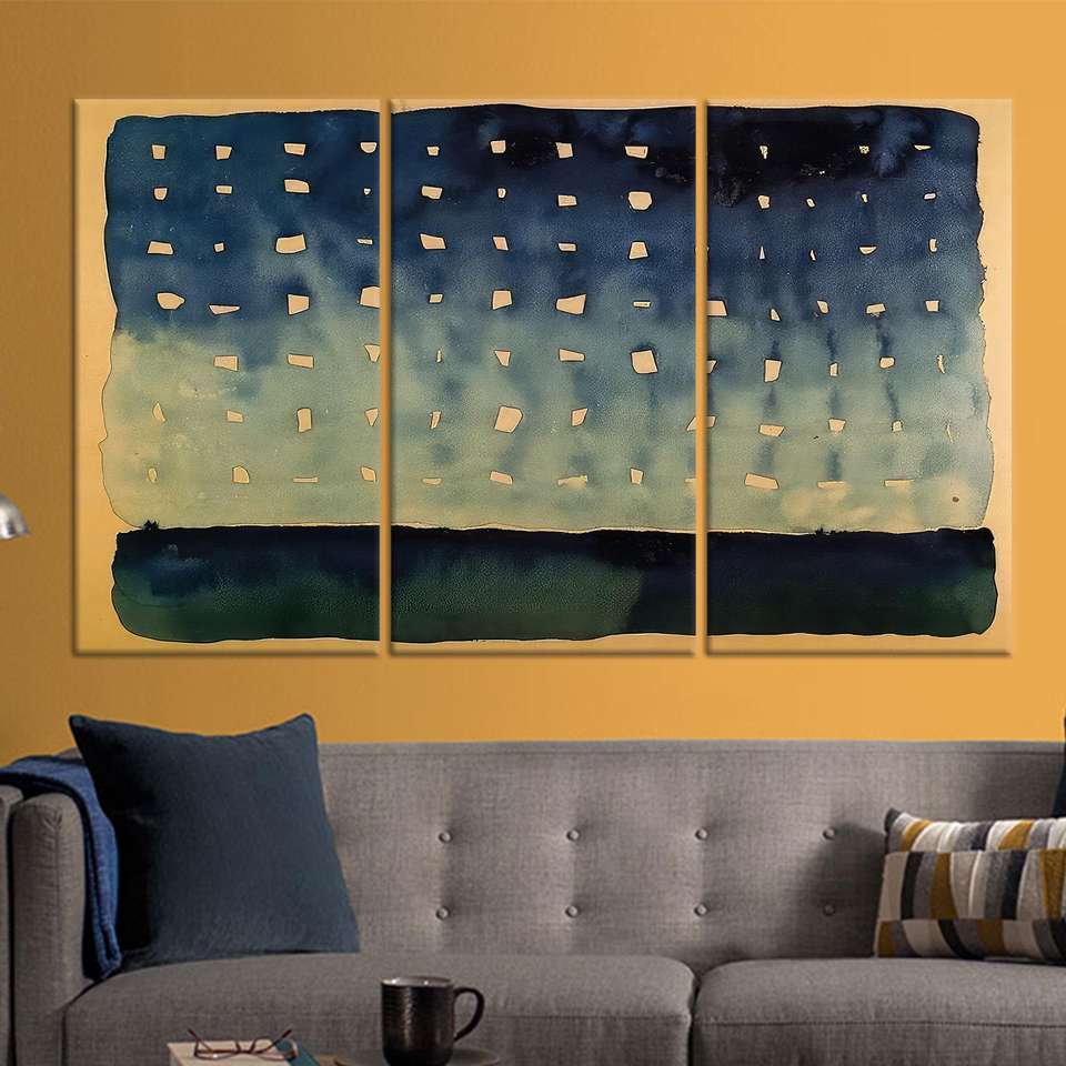 Modern Abstract Night Sky Canvas Print, Elegant Navy and Beige,SET OF 3 CANVAS