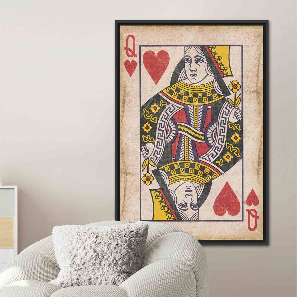 Modern Abstract Queen Art Canvas, Playroom Decor, Printed Hearts Design,Black Framed