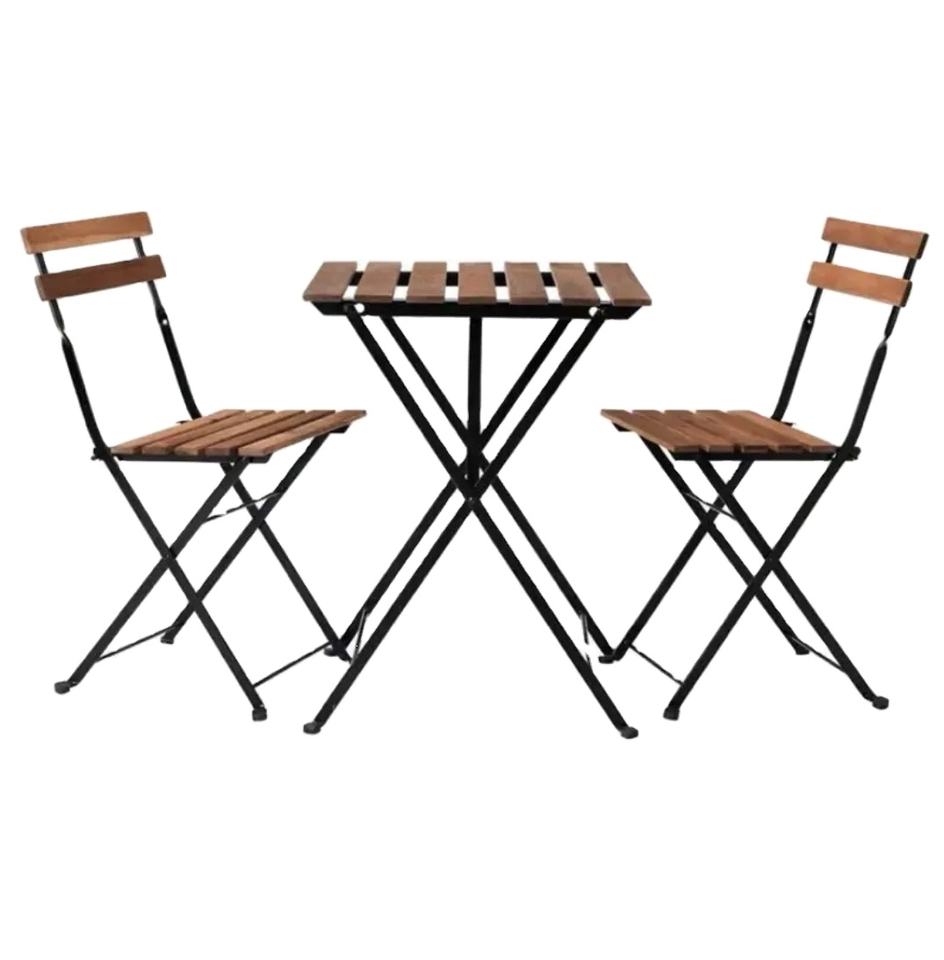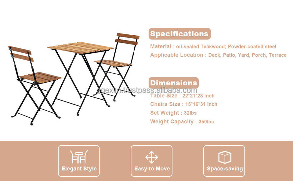 Modern Acacia Hardwood Outdoor Bistro Set Waterproof Foldable Dining Table and Chairs for Hospital Villa Balcony Use