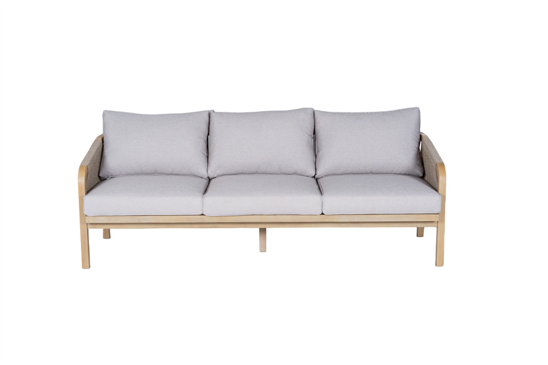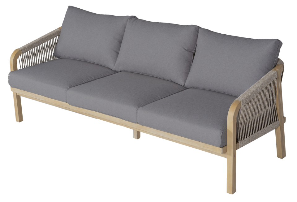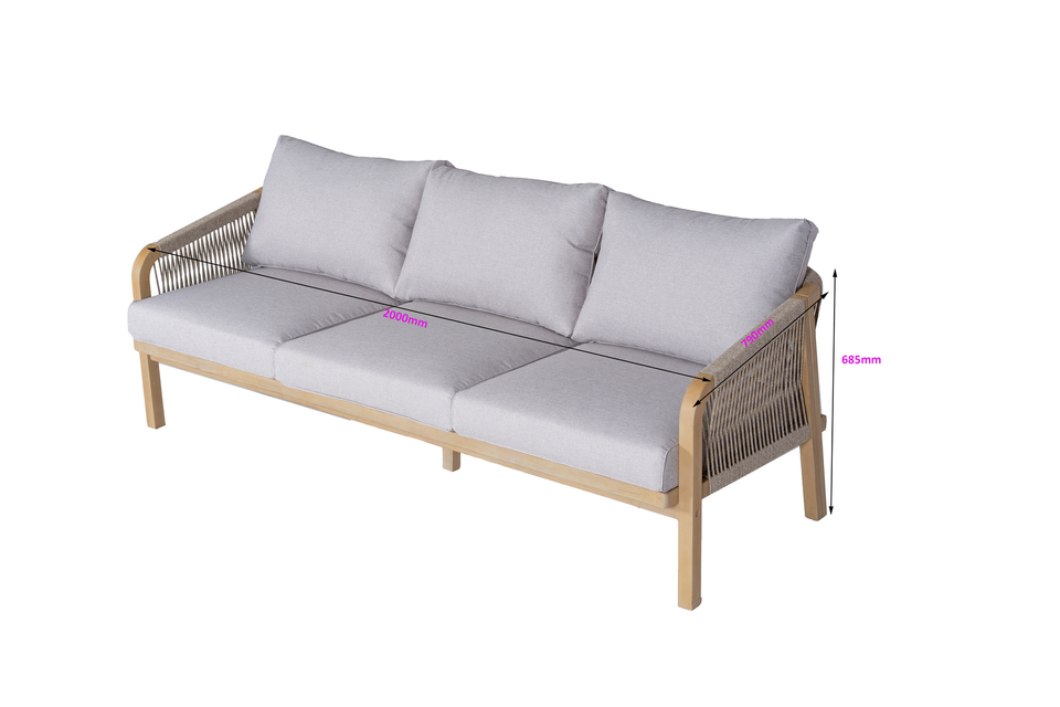 Modern Acacia Wood 3-Seater Outdoor Sofa | Rope Armrests & Cushions | Patio Lounge Seating for Hotels | Made in Vietnam