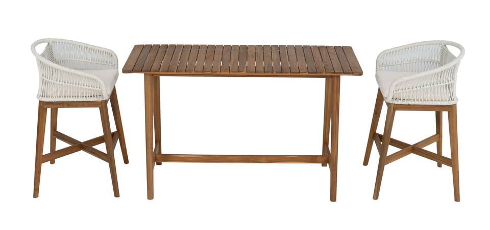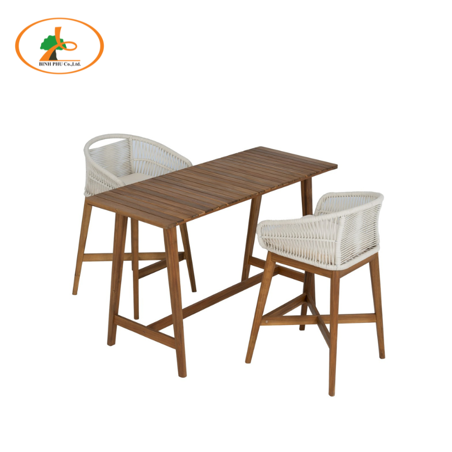 Modern Acacia Wood Bar Set for Outdoor Patio Dining Durable Rope Woven Armchairs Slatted High Table for Hotels Supplied Vietnam