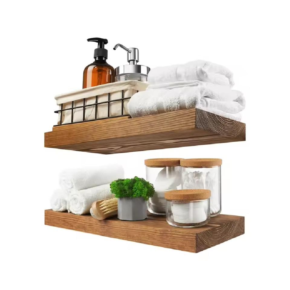 Modern Acacia Wood Floating Bathroom Shelves Wall Mounted Storage Display for Kitchen & Living Room Direct Factory Supply
