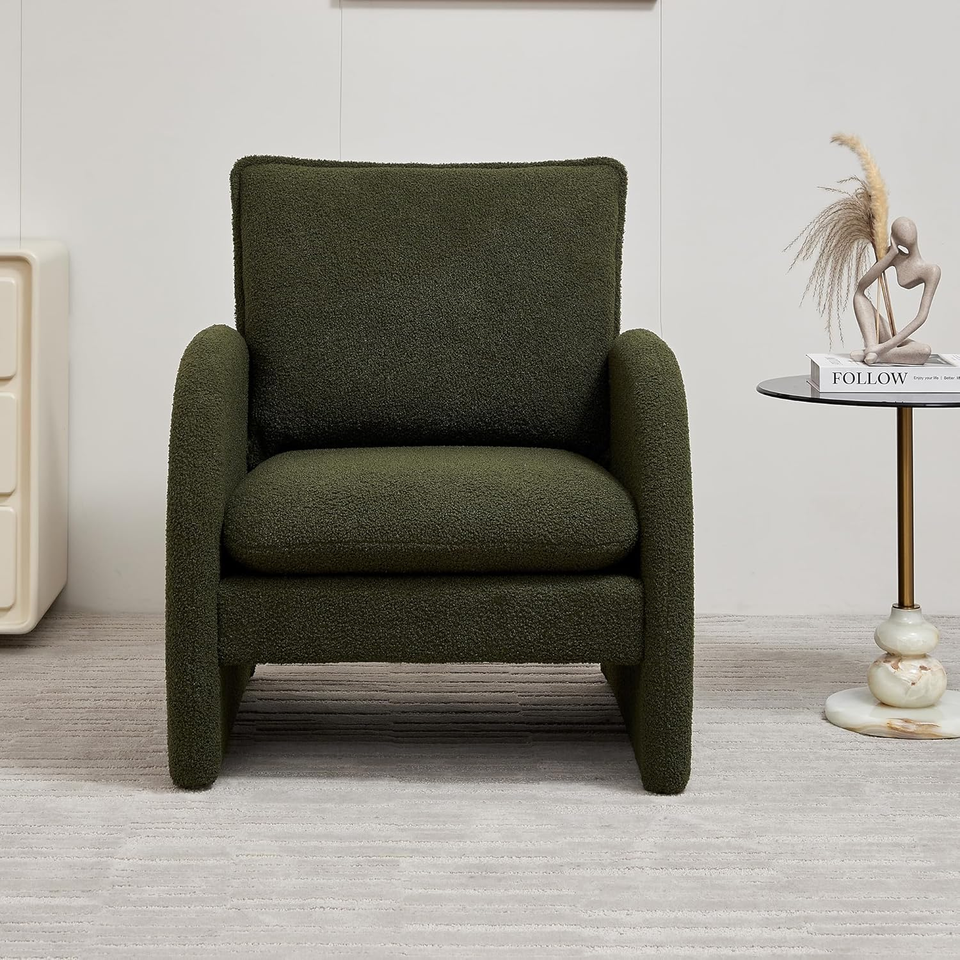 Modern Accent Chair,Lambswool Fabric Armchair,Upholstered Leisure Chair with High Back, KD Chair for Living Room, Bedroom,Green