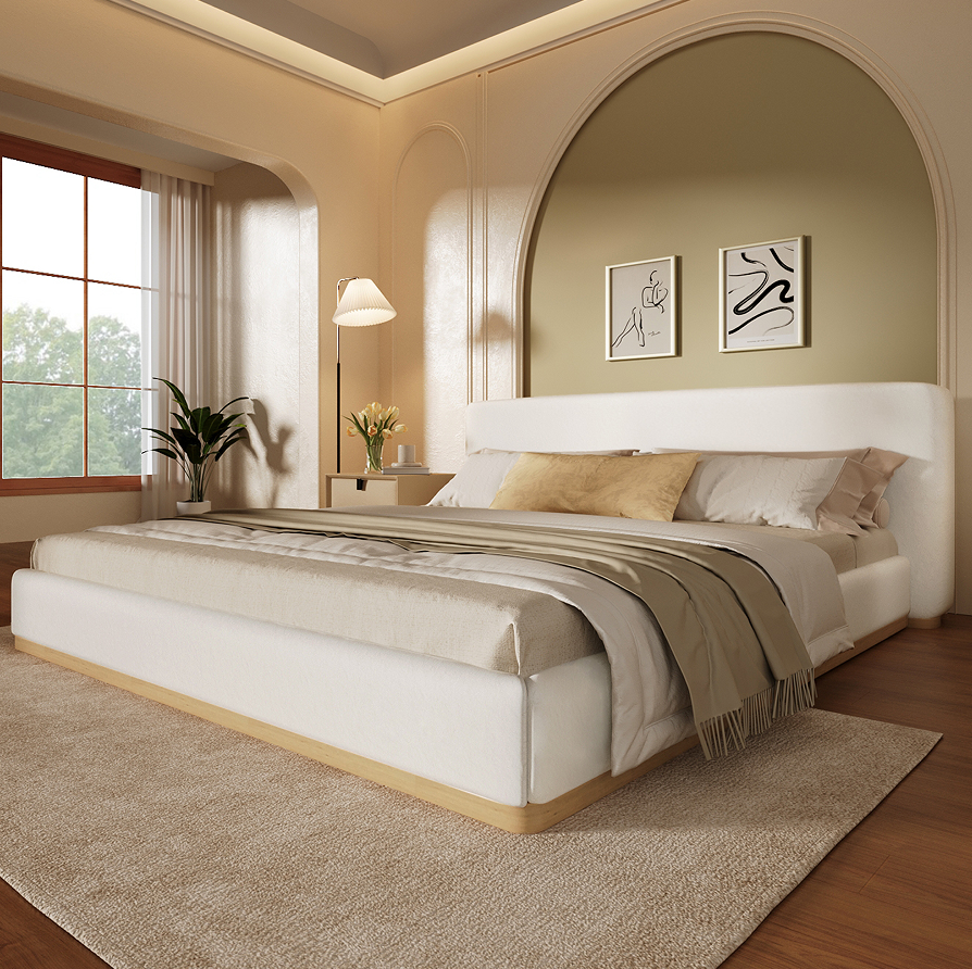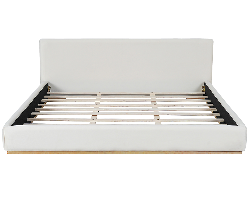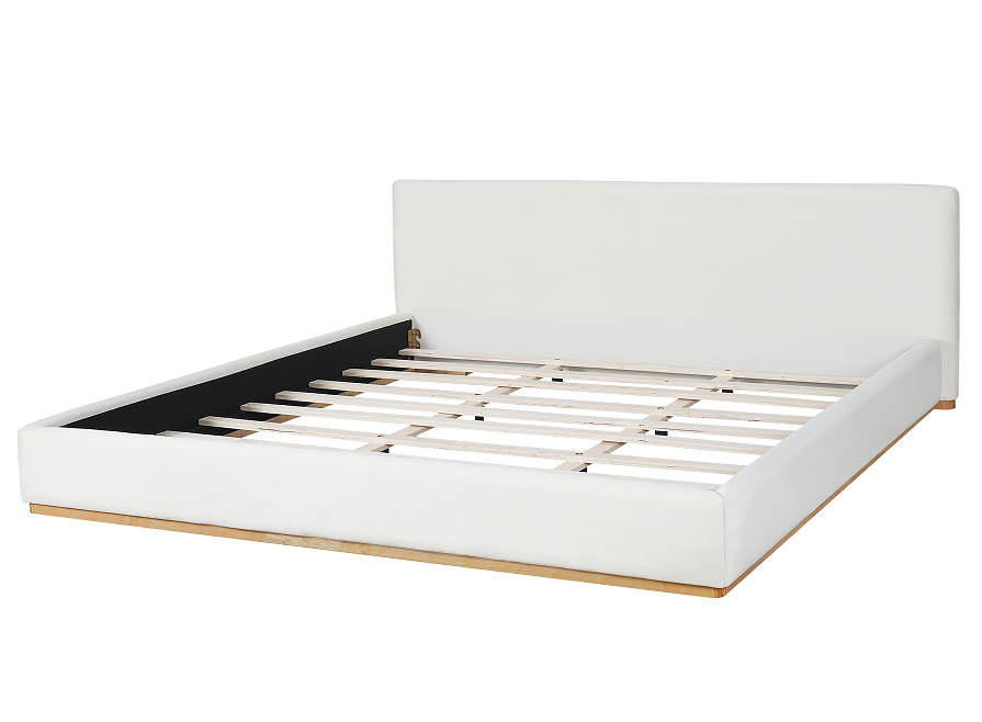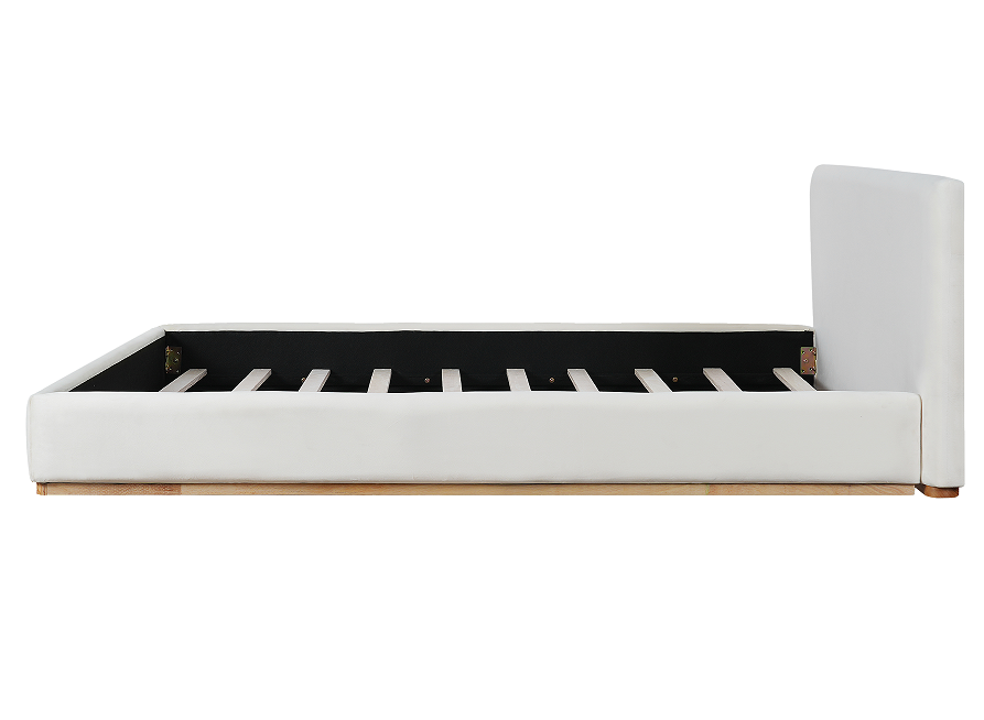 Modern Adjustable Upholstered Bed with Rattan Frame Apartment-Friendly King Size White