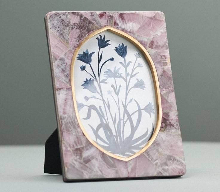 Modern Aesthetic Marble Effect Photo Frame with Artistic Oval Cut Design Window and Gold Rim for Luxury Home Tabletop Decoration