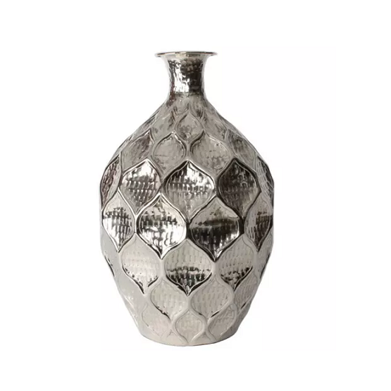 Modern Aluminium Hammered Design Nickel Plated Finishing Metal Flower Vase Wedding Table Top Decoration Flower Vase Unique Style