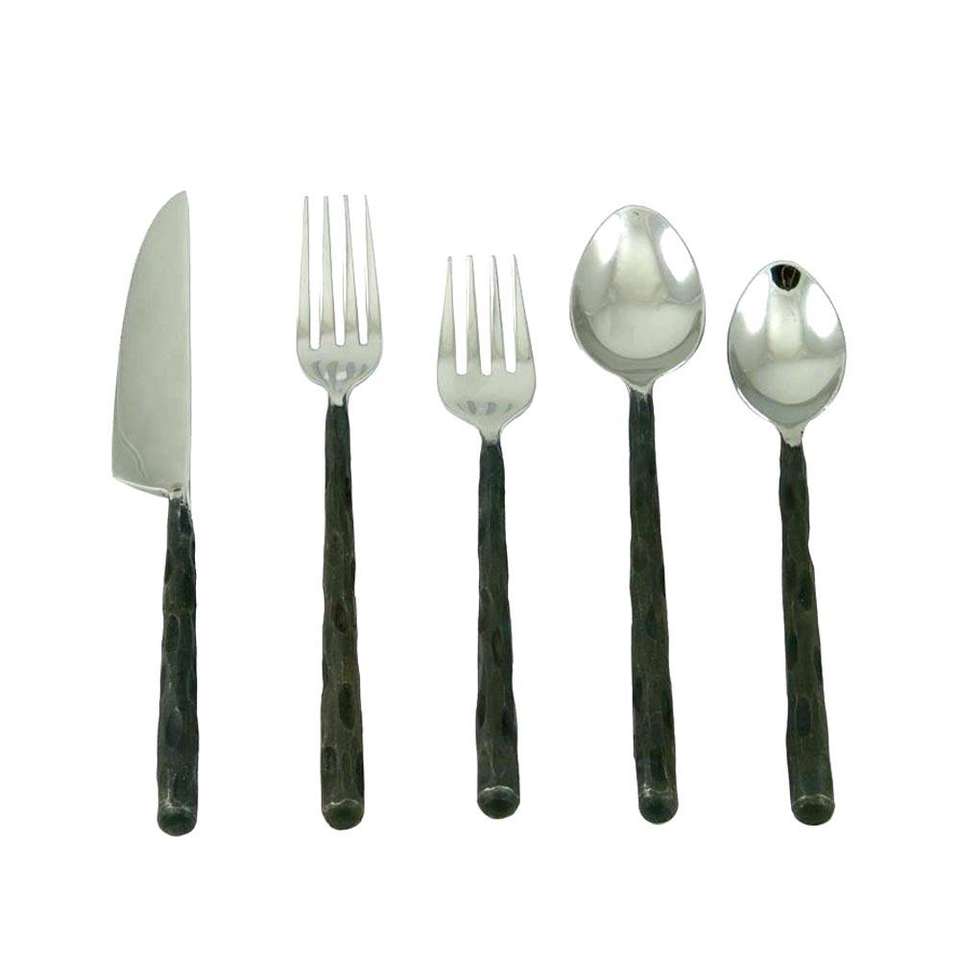 Modern American Style Premium Stainless Steel Brass Shiny Gold 5 Pcs Cutlery Set with Square Handles for Hotel and Restaurant