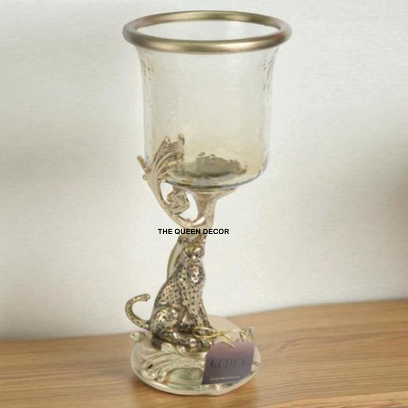 Modern Antique Aluminum Metal Round Shape Color Fully With Glass Leafy Looking Decorative Flower Vase