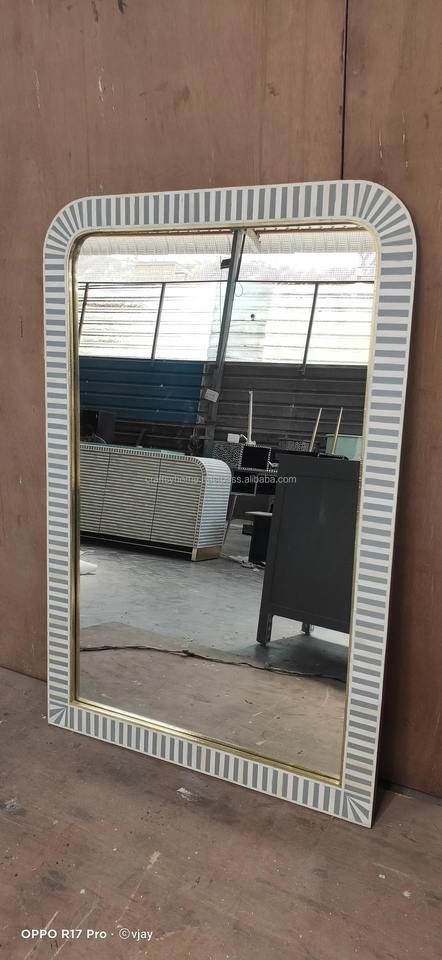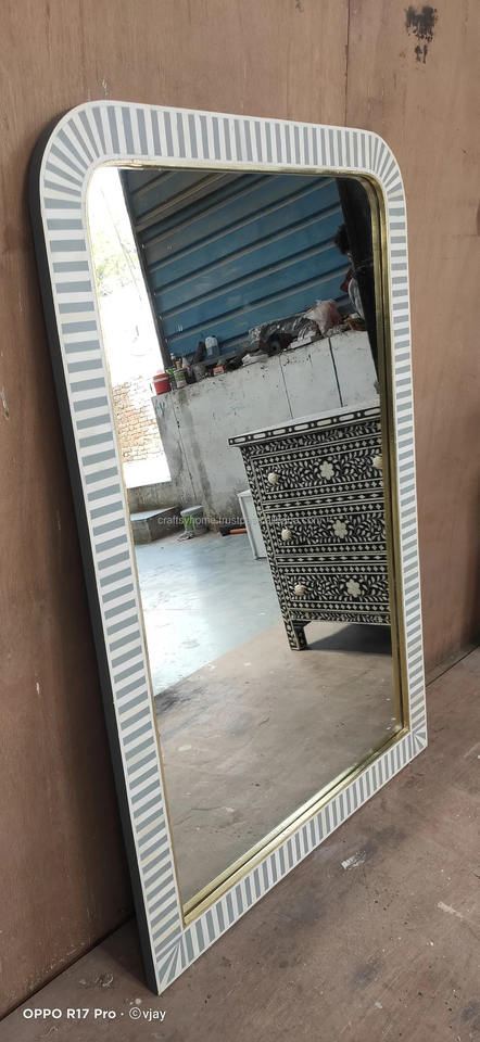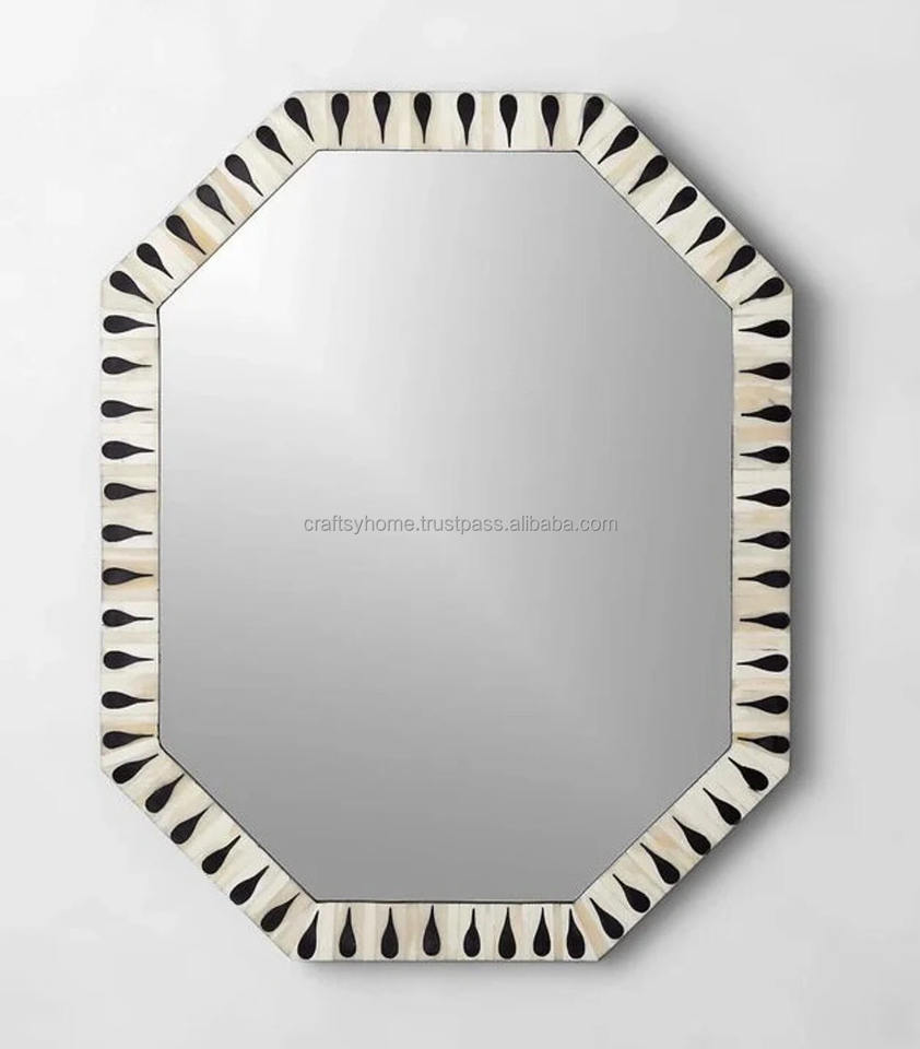 Modern Antique Replica Decorative Wall Mirror Rectangular Bone Inlay for Home Living Room Application