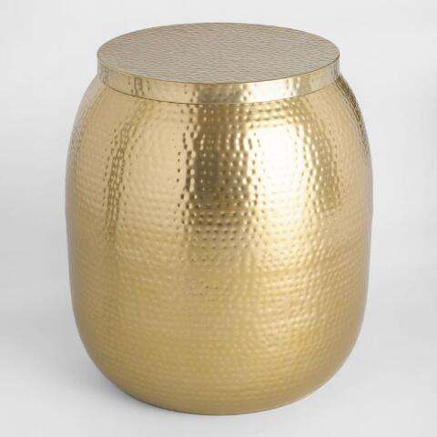 Product name:Silver Hammered Metal Drum Accent Table