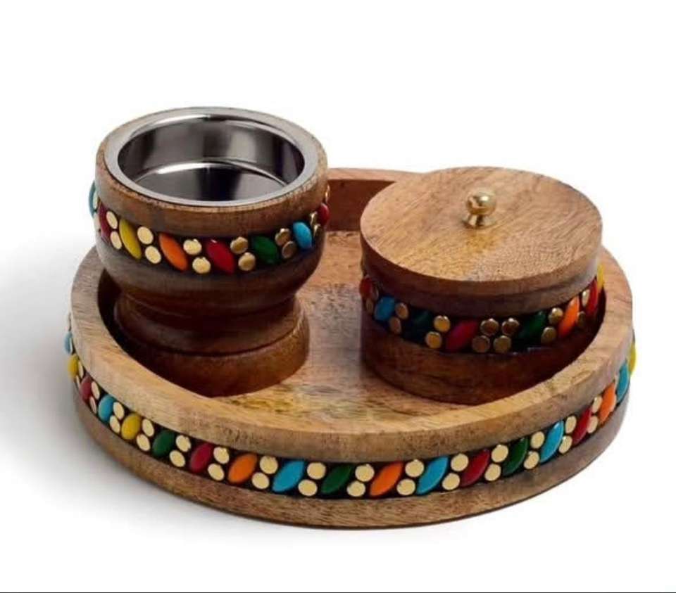 Modern Arabic Design Silver Metal Stud Wooden Incense Burner Set Tray Handmade Eco-Friendly 12 Inch for Home Room Decor Mubakhar