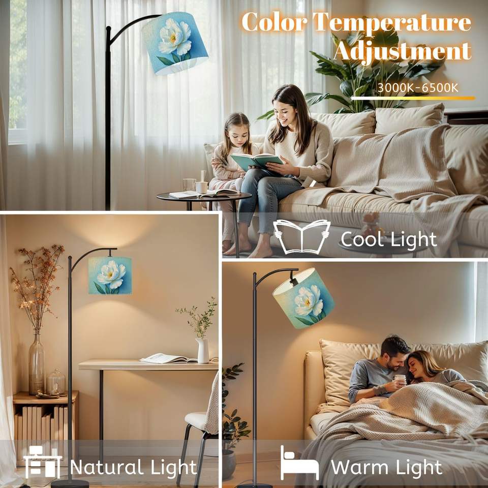 Modern Arc Floor Lamp with Remote Dimming & Adjustable Pink Shade Leopard Jungle Themed for Living & Bedroom in Stock