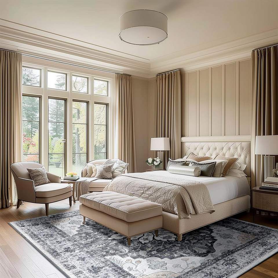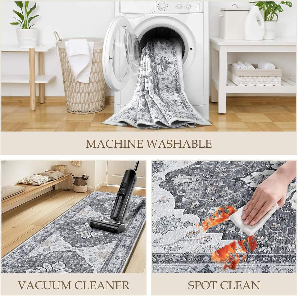 Modern Area Rugs Vintage Bluish Grey Floral Non Slip Non Shedding Soft Rectangular carpet for Living Room Custom in Stock