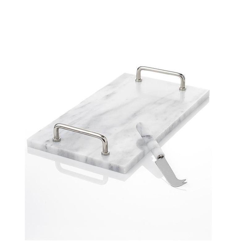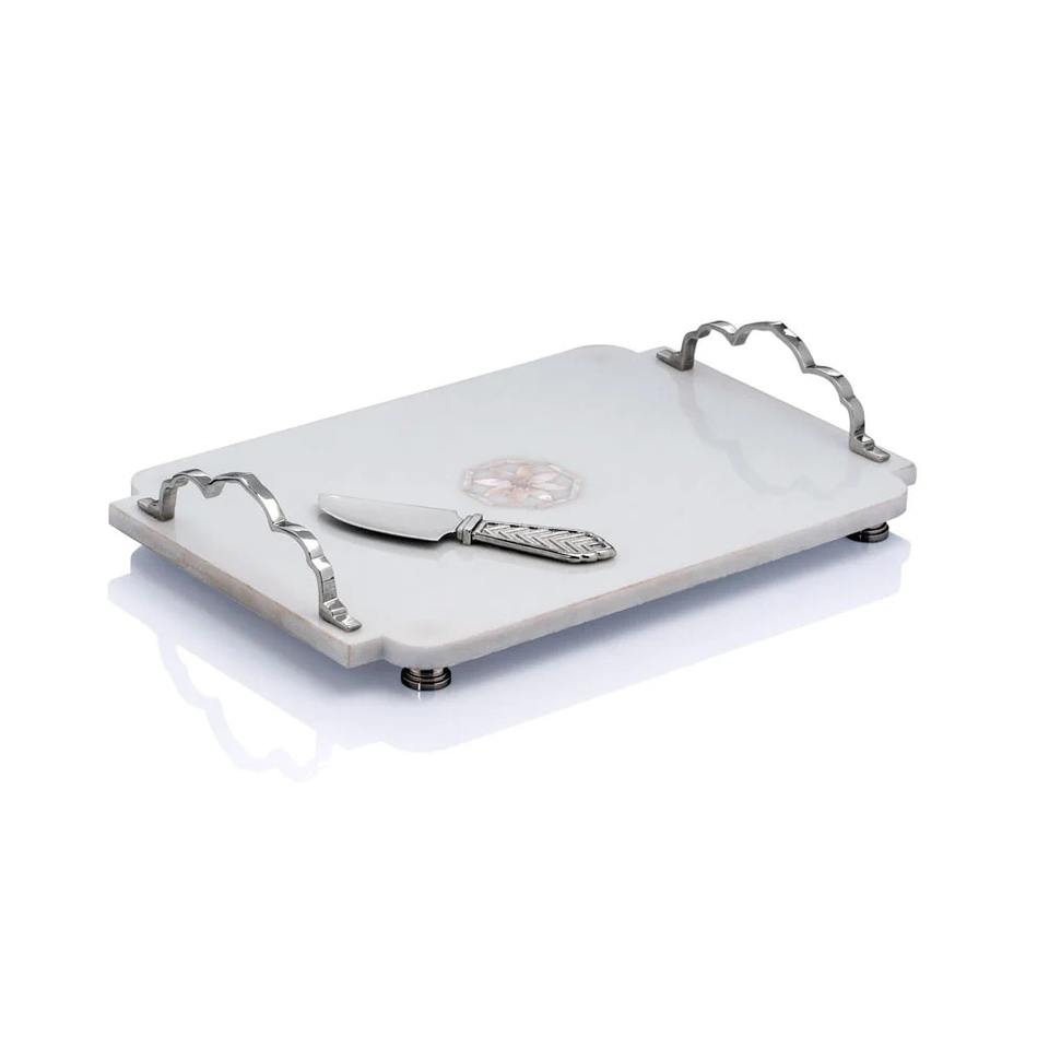 Modern Arrival Kitchen Essential Custom Size White Marble Serving Tray Metal Handle Sharp Knife Sustainable Feature for Home Use