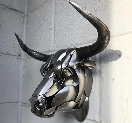 Modern Art Bull Head Bronze Statue Metal Cast Bull Head Sculpture for Wall Decoration and for Gifting