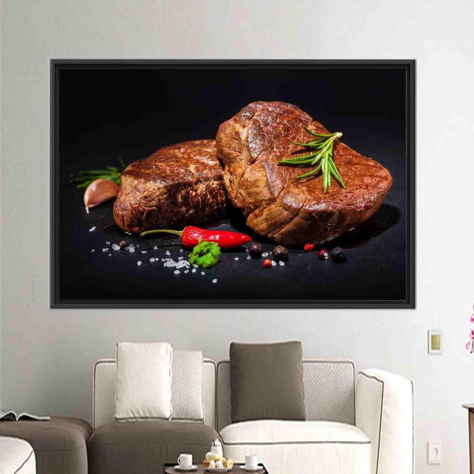 Modern Art Canvas: Steak with Spices Printed Wall Decor,1P:Black Framed
