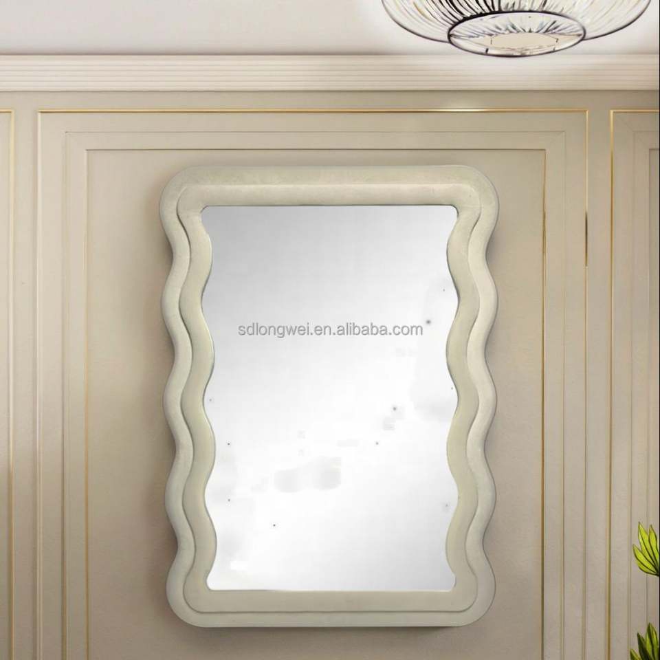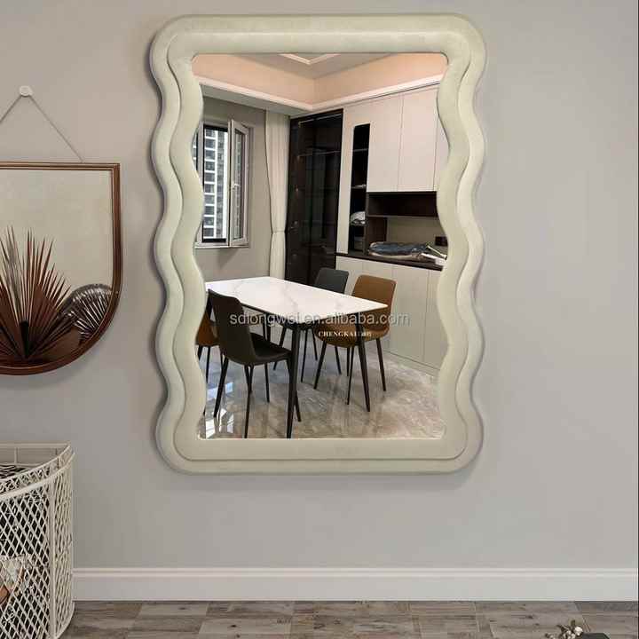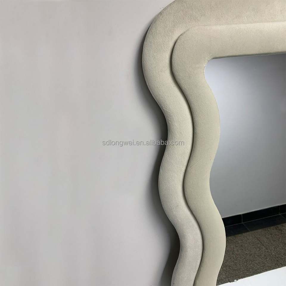 Modern Art Deco Flannel-Wrapped Full Body Mirror Irregular Wavy Wall Hanging for Cloakroom Living Room Decorative