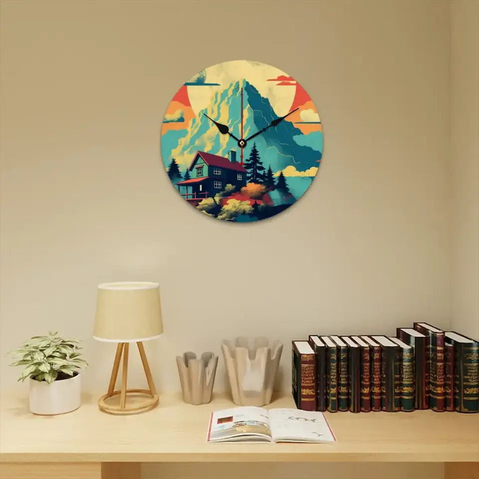 Modern Art Deco Wooden Wall Clock Single Face MDF Decorative for Home Living Room Custom Logo Date Function
