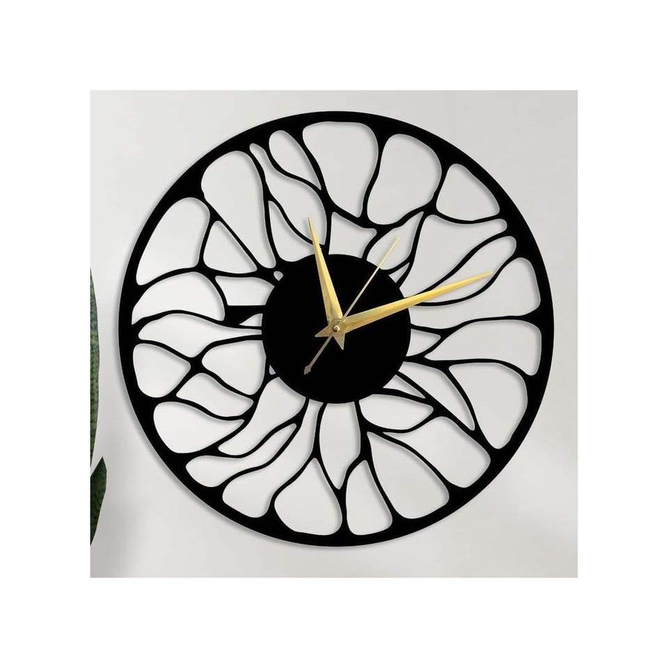 Modern Art-Inspired Black Petal Design Wall Clock Organic Pattern Metal Home Decor with Gold Hands