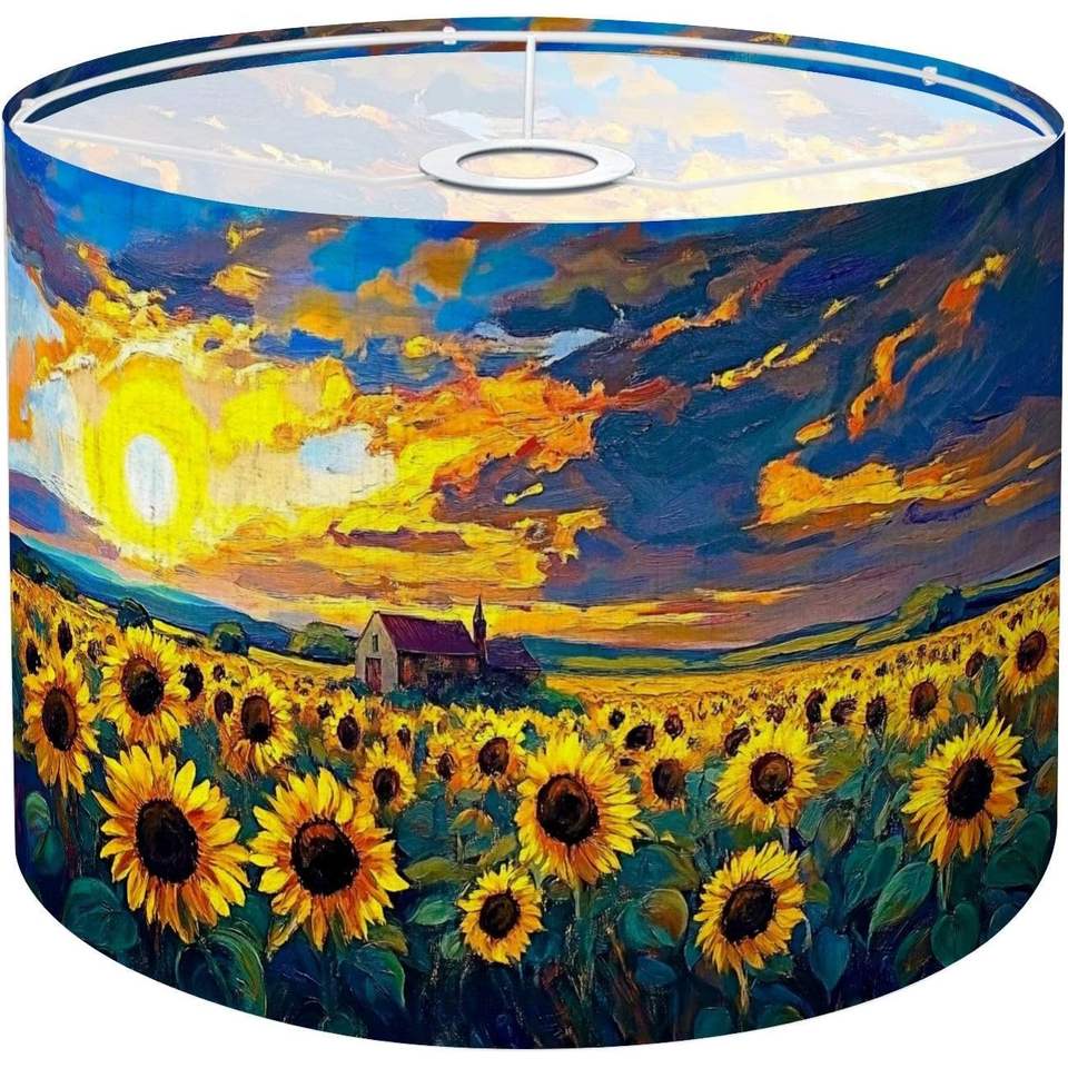 Modern Art Oil Sunflower Field Drum Lamp Shades Set 2 for Floor Lamps Table Lamps Pendant Lights Coastal Victorian Design Stock