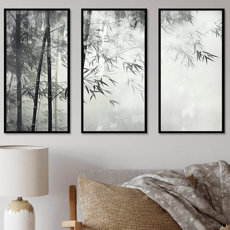 Modern Artistic Black and White Wild Bamboo Canvas Art Set for a Stylish Look