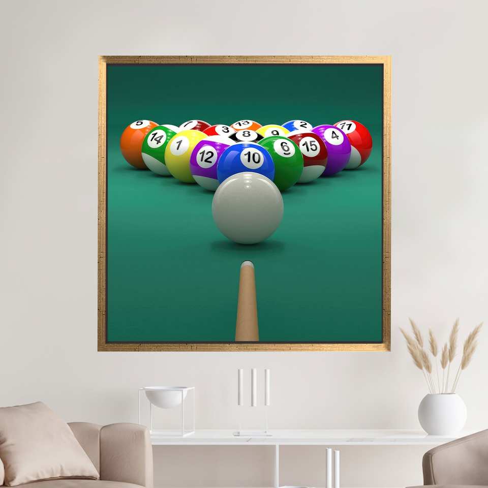 Modern Artwork Billiard Print Canvas - Elegant Bedroom Decor Poster,Gold Framed