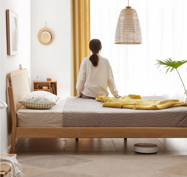 Modern Ash Wood Furniture Rattan Weaving Bed for Home or School Bedroom Use with Storage Feature for Kitchen Application