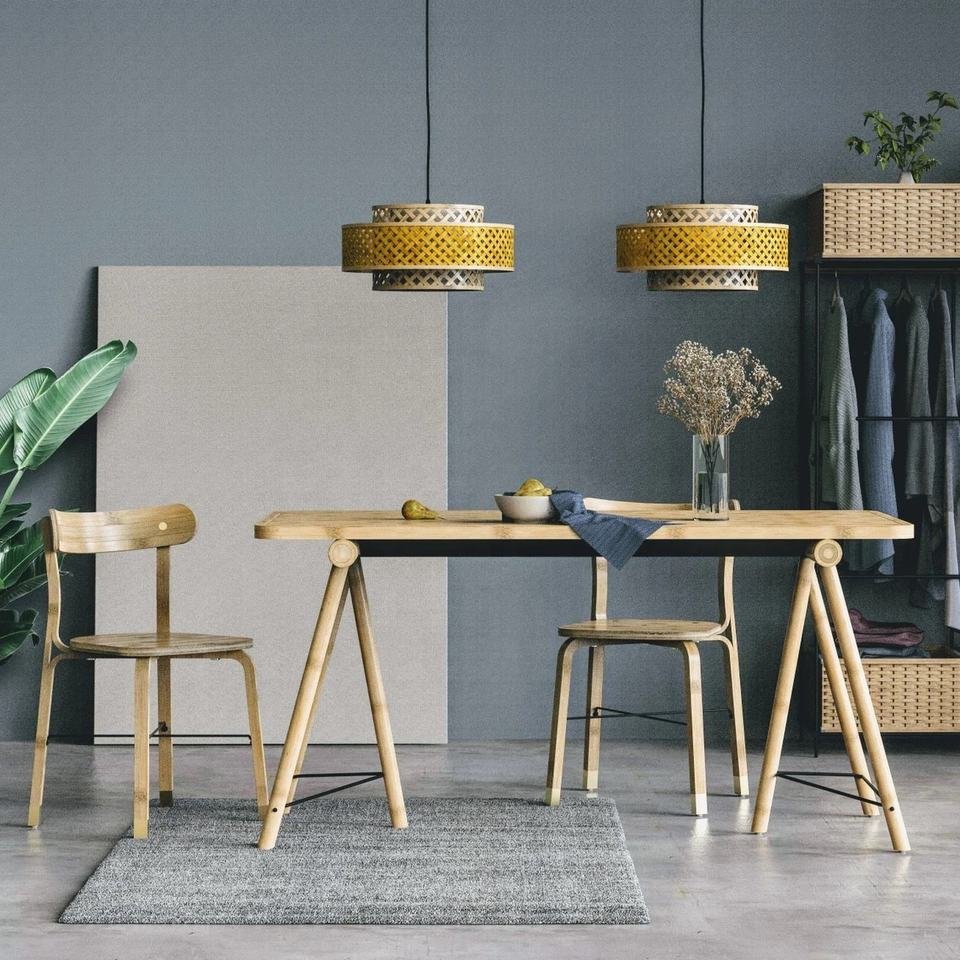 Modern Asian Dining Room Sets 4 Bamboo Pendant Lights Rattan Lampshades Home Decor Furniture Vietnam Traditional Design Style