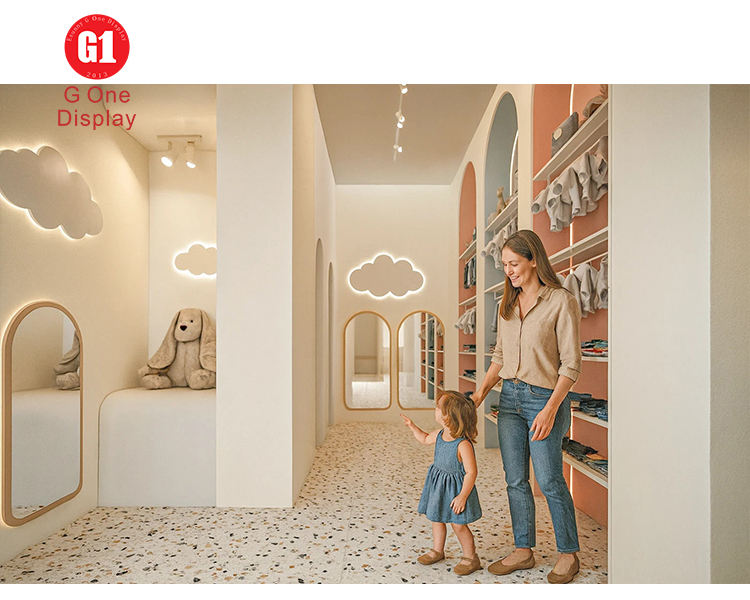 Modern Baby Garment Shop Display Counter Design Kids Clothes Store Furniture Decoration Children's Clothing Display Rack