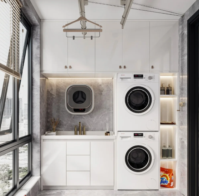 Modern Balcony Laundry Sink Cabinet Living Room Storage Cabinet with Convenient Washing Machine Access