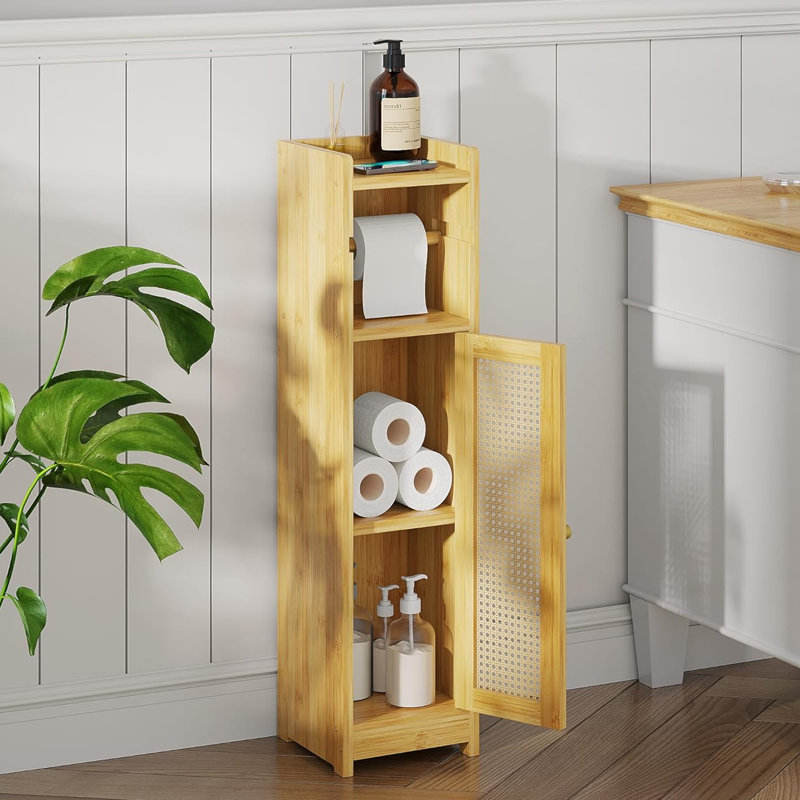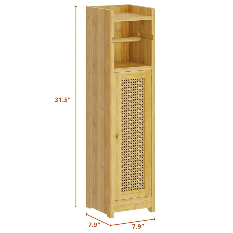 Modern Bamboo Bathroom Floor Cabinet with Rattan Door for Home Apartment School Hotel Hospital Outdoor Storage