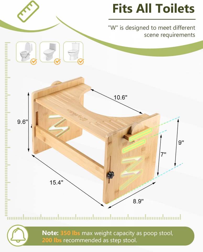 Modern Bamboo Bathroom Stool Toilet Stool with Adjustable Heights Non-Slip Display