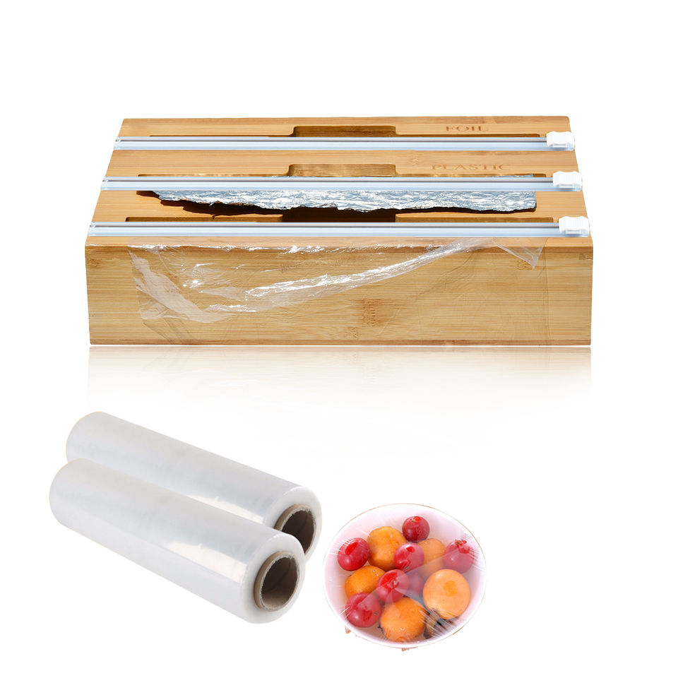 Modern Bamboo Foil Plastic Wrap Storage Organizer Wall-Mounted and Compatible with Kitchen Drawers Rectangle Carved Design
